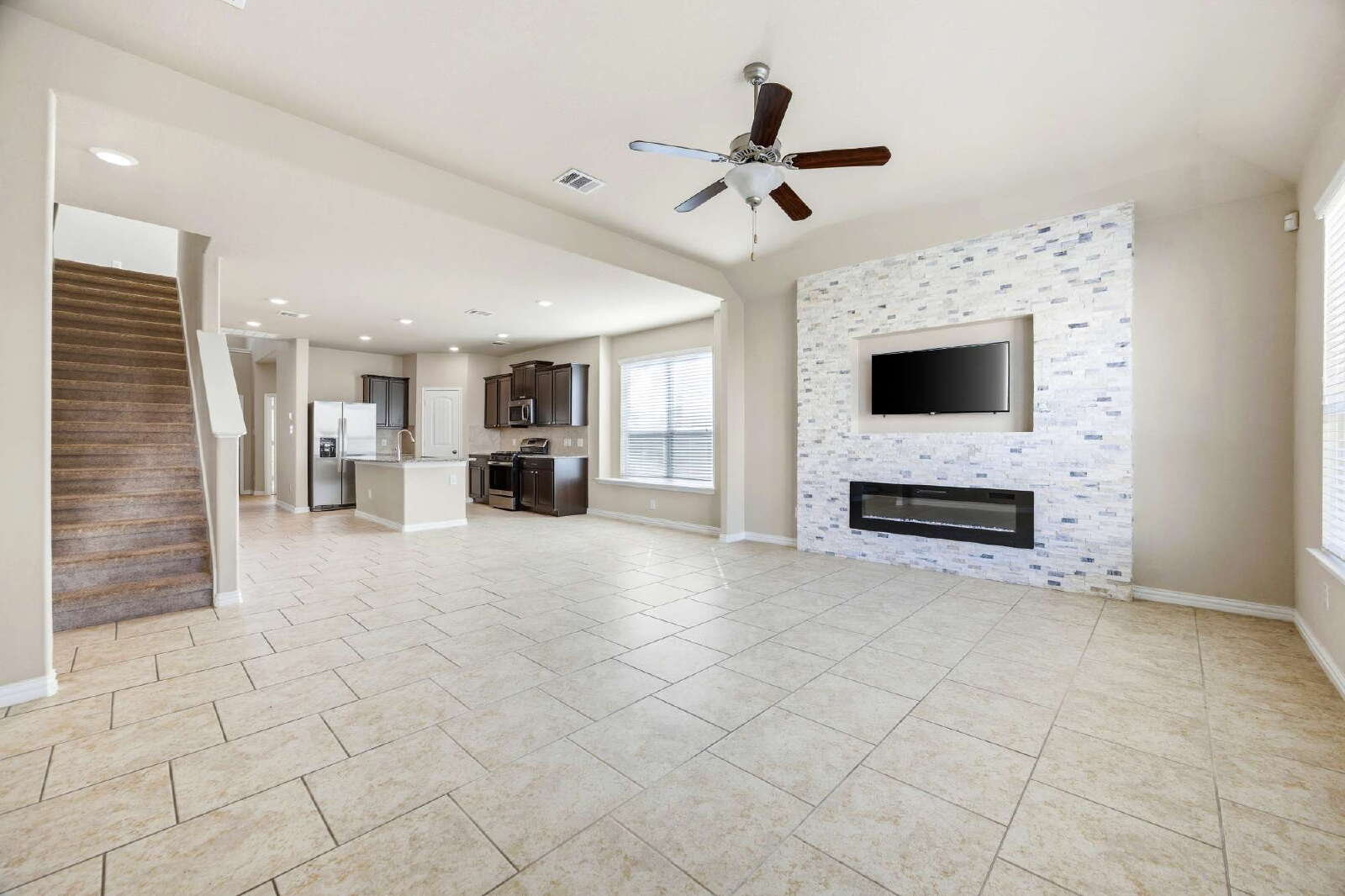Come see this beautiful 4-bedroom, 2.5-bath home located in the desirable Stillwater Ranch community. The main level features a dedicated office, an open-concept floor plan with a spacious dining area and large living room, perfect for everyday living and entertaining. The primary suite is conveniently located downstairs and offers a generous walk-in closet and walk in shower. Upstairs, enjoy a versatile loft ideal for entertaining or relaxing, along with three spacious bedrooms, each with walk-in closets. The home includes a refrigerator, gas stove, and water softener for added convenience. Residents of Stillwater Ranch enjoy exceptional community amenities, including parks, walking trails with a pond, basketball and tennis courts, a gym, and a resort-style pool.